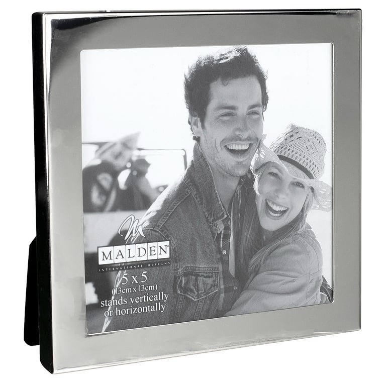 Main view Product Details Malden Designs® High-Polished Silverplate Engraveable 5x5 frame — Malden's ESSENTIALS has a contemporary and minimalist silhouette. High polished Silver-plate moulding edge is 5/8" wide all-around. Style has a nice dual easel back for either portrait or landscape . We often recommend this piece for 1-line engraving - the results are gorgeous. Engraveable area is ½" wide. See Personalize this item for more detail. Manufactured by Malden® Designs of Massachusetts, fine frames for generations. High-Polished Silverplate Engraveable 5x5 frame Model #096287142557 List $18.00 You pay $14.95 This item IS in stock and can be expected to ship 01/21/2026 In stock Your Price Match is Active Your request for a price of $0.00 for a minimum quantity of has been accepted. You have [time] left to purchase this item for $0.00 instead of $14.95 each. Find a Lower Price? We BEAT All Authorized Retailers [?] FEATURESDisplays:5"x5"Material:SilverplateFinish:SilverOccasion:Anniversary, Birthday, Business & office, Congratulations, Corporate gifts, Friendship, Get well, Good luck, Housewarming, Inspirational, Mother`s Day, Retirement, Romantic, Sweet 16, Teacher gifts, Team & coach gifts, Thank-Motivate-Reward, Celebrating Travels, WeddingStyle:Classic, Minimal, Traditional, RomanticBrand:Malden Designs®Display Type:Tabletop (or wall w/optional hanger - available separately) Approx. Overall Dimensions:6 5/16"x6 5/16"x3/4" This item ships in its own box SHARE THIS ITEM Share on Facebook