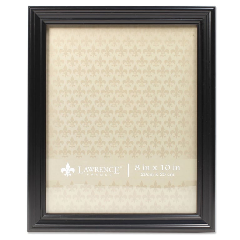 Main view Angled Reverse Product Details Lawrence Frames® Classic Black Ridged 8x10 frame by Lawrence Frames® — High quality burnished black composite picture frame. Beautifully finished picture frame that will be a great decorative addition to any room. Includes a two-way easel for table top and wall hangers - for vertical or horizontal display. High quality black velvet backing. Picture frame comes with glass to protect your photo, and is individually boxed. Produced by Lawrence Frames®. Classic Black Ridged 8x10 frame by Lawrence Frames® Model #751148071109 List $23.00 You pay $16.95 In stock Can be shipped today [?] Your Price Match is Active Your request for a price of $0.00 for a minimum quantity of has been accepted. You have [time] left to purchase this item for $0.00 instead of $16.95 each. Find a Lower Price? We BEAT All Authorized Retailers [?] FEATURESDisplays:8"x10"Material:Wood (mdf/engineered)Finish:BlackOccasion:Business & office, Home decoratingStyle:Classic, TraditionalOrientation:BothBrand:Lawrence Frames®Display Type:Desktop or Wall Approx. Overall Dimensions:9 13/16"x11 13/16"x11/16" This item ships in its own box SHARE THIS ITEM Share on Facebook