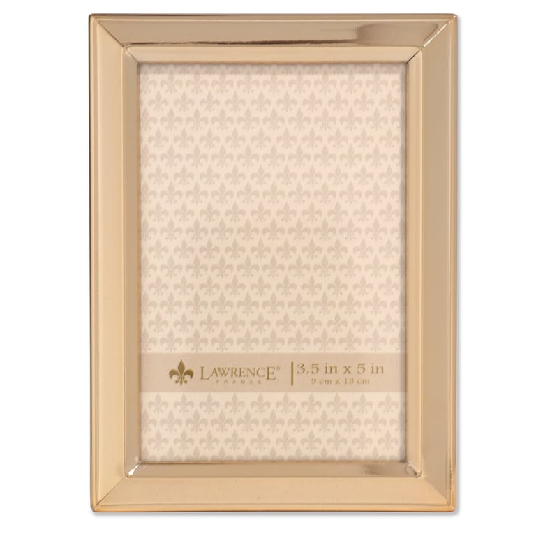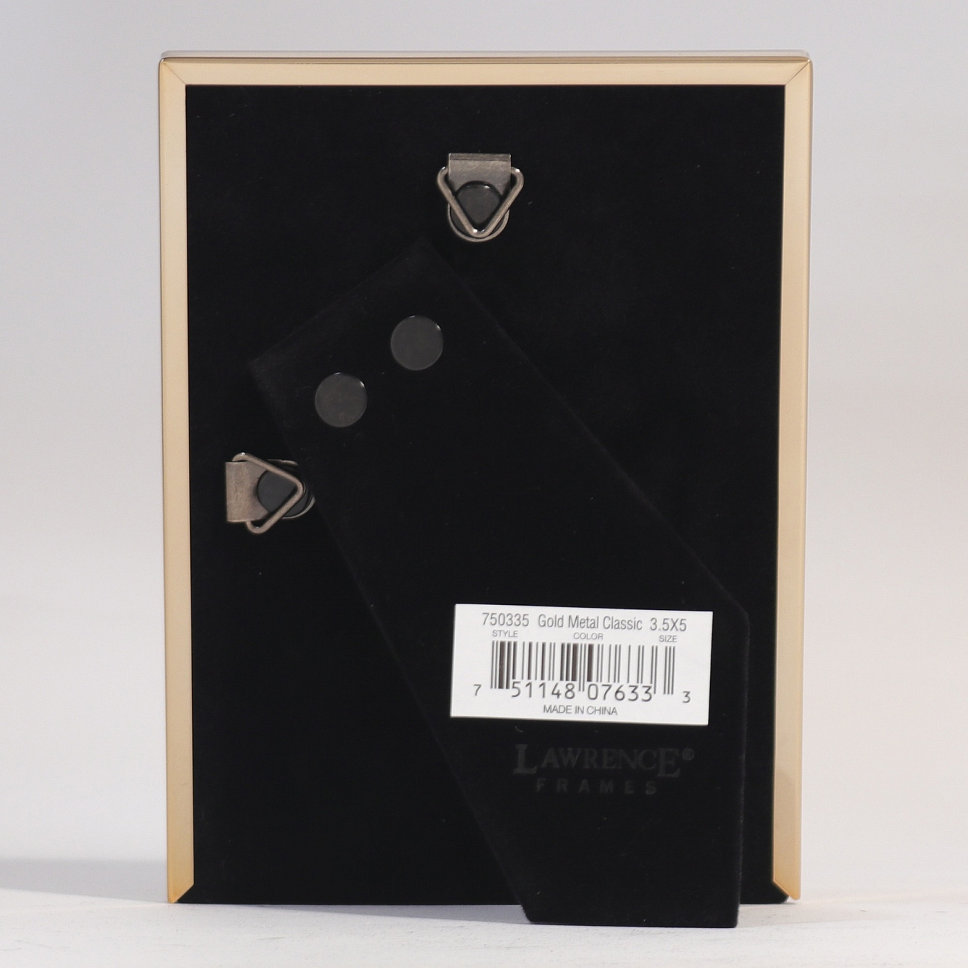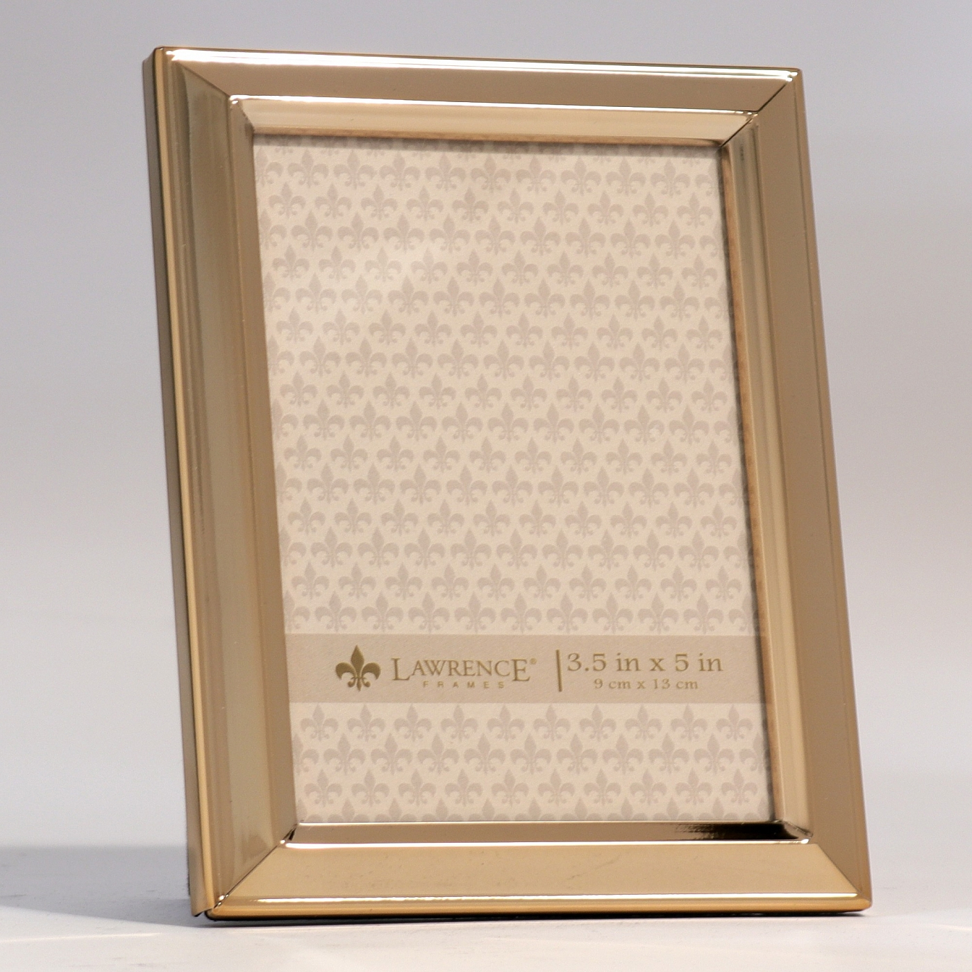 Main view Product Details Lawrence Frames® Bevelled Border Gold finish 3x5 frame by Lawrence® — Gold metal picture frame with classic bevelled edge design. This heavy weight cast metal frame has a rich and lustrous gold finish. High quality black velvet backing with easel for vertical or horizontal tabletop display, and comes with hangers for vertical or horizontal wall mounting. Glare resistant glass lens. Channel border back for easy slide-in assembly with your print. By Lawrence®. Bevelled Border Gold finish 3x5 frame by Lawrence® Model #48076333 List $18.00 You pay $12.95 This item IS in stock and can be expected to ship 11/12/2025 Your Price Match is Active Your request for a price of $0.00 for a minimum quantity of has been accepted. You have [time] left to purchase this item for $0.00 instead of $12.95 each. Find a Lower Price? We BEAT All Authorized Retailers [?] FEATURESDisplays:3.50"x5"Material:Metallic (all)Finish:GoldOccasion:Anniversary, Birthday, Business & office, Friendship, Home decorating, Thank-Motivate-RewardStyle:Contemporary, SophisticatedOrientation:BothBrand:Lawrence Frames®Display Type:Desktop or Wall This item ships in its own box SHARE THIS ITEM Share on Facebook