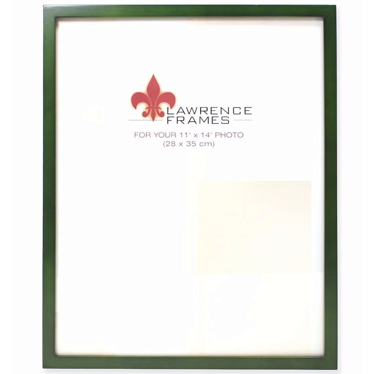 Main view Angled Reverse Product Details Lawrence Frames® SQUARE CORNER Green Stain classic 11x14 frame by Lawrence Frames® — From Lawrence®, a square corner "flat-top" silhouette.Frame edge is a very contemporary ½" all-around.Beautifully finished hardwood moulding with tapered seams. Glare resistant glass lens. Attractive black hardboard back.By Lawrence®, fine frames for generations. SQUARE CORNER Green Stain classic 11x14 frame by Lawrence Frames® Model #751148067546 List $33.00 You pay $28.95 This item IS in stock and can be expected to ship 02/23/2026 Your Price Match is Active Your request for a price of $0.00 for a minimum quantity of has been accepted. You have [time] left to purchase this item for $0.00 instead of $28.95 each. Find a Lower Price? We BEAT All Authorized Retailers [?] FEATURESDisplays:11"x14"Material:Wood (full grain)Finish:GreenOccasion:Business & office, Corporate giftsStyle:Classic, Architectural, Minimal, ContemporaryOrientation:BothBrand:Lawrence Frames®Display Type:Desktop or Wall This item ships in its own box SHARE THIS ITEM Share on Facebook