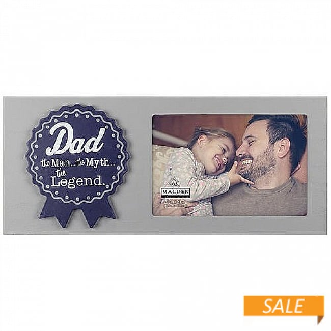 Product Details Malden Designs® Dad MEDAL 6x4 frame — DAD the Man ... the Myth ... the LegendAdd a great photo and you have a gift that will make any Dad beam with pride anytime he sees it !Fashioned in fine grey wood stain finish with navy medal applique. Glare resistant glass lens.Produced by Malden Design®. Dad MEDAL 6x4 frame Model #096287166409 List $15.00 You pay $7.90 In stock Ships next business day [?] Your Price Match is Active Your request for a price of $0.00 for a minimum quantity of has been accepted. You have [time] left to purchase this item for $0.00 instead of $7.90 each. Find a Lower Price? We BEAT All Authorized Retailers [?] FEATURESDisplays:4"x6"Material:Wood (mdf/engineered)Finish:Gray/CharcoalOccasion:Valentine`s Day, Father`s DayStyle:Sports & leisure, Words & whimsy, Sentiments | ready madeOrientation:Horizontal OnlyBrand:Malden Designs®Display Type:Desktop or Wall This item ships in its own box SHARE THIS ITEM Share on Facebook