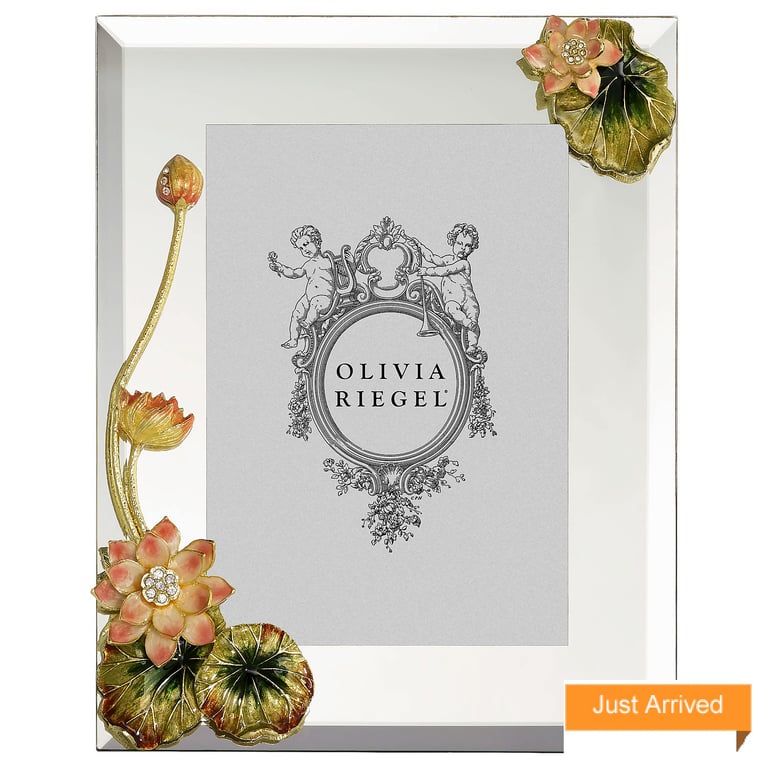 Main view Product Details Olivia Riegel Botanica Lotus Gold Vermeil Floral 5x7 frame by Olivia Riegel® — Honoring the beauty and purity of the lotus blossom. Beveled mirrored glass, adorned with gold finished pewter lotus blossoms and leaves, intricately hand-enameled in soft pink and green hues. Hand-set clear European crystals. Elegant champagne moiré silk back, with easel designed for vertical or horizontal placement. Tarnish resistant. Signature luxury gift box included. An original design frame from the Olivia Riegel® collection Botanica Lotus Gold Vermeil Floral 5x7 frame by Olivia Riegel® OLIVIA RIEGEL® HOLIDAY CELEBRATION SAVINGS - Buy More / Save More * Add this item to your cart for the full details of this promotion. Conditions may apply. Model #850054966964 $185.00 This item IS in stock and can be expected to ship 01/14/2026 Your Price Match is Active Your request for a price of $0.00 for a minimum quantity of has been accepted. You have [time] left to purchase this item for $0.00 instead of $185.00 each. Find a Lower Price? We BEAT All Authorized Retailers [?] FEATURESDisplays:5"x7"Material:GlassFinish:Gold, Green, PinkOccasion:Anniversary, Congratulations, Engagement, Home decorating, Romantic, Thank-Motivate-Reward, WeddingStyle:Art Nouveau, Asian Zen, Florals, OrnateOrientation:BothBrand:Olivia RiegelDisplay Type:Desktop Only Approx. Overall Dimensions:6 1/2"x8" This item ships in its own box SHARE THIS ITEM Share on Facebook