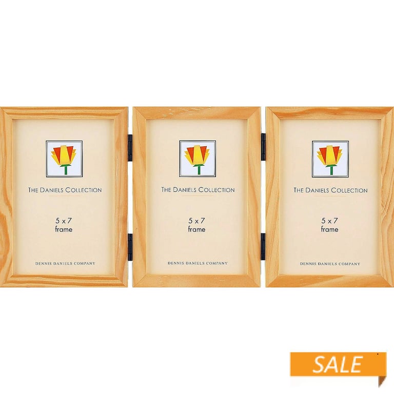 Main view Product Details Dennis Daniels® The Original DANIELS W41: Natural-stain GALLERY WOODS wood hinged triple 5x7 by Dennis Daniels® — Very nicely crafted with select hardwoods, tailored corners and solid brass hinges.Pieces have black hardboard backs with swivel tabs that easily open to insert prints. Frame edge is a very contemporary ½" all-around.For tabletop display only. Glare resistant glass lenses.Quality crafted by Dennis Daniels® of California, maker of fine frames for generations. The Original DANIELS W41: Natural-stain GALLERY WOODS wood hinged triple 5x7 by Dennis Daniels® Model #782680014651 List $42.00 You pay $24.90 This item IS in stock and can be expected to ship 01/28/2026 In stock Your Price Match is Active Your request for a price of $0.00 for a minimum quantity of has been accepted. You have [time] left to purchase this item for $0.00 instead of $24.90 each. Find a Lower Price? We BEAT All Authorized Retailers [?] FEATURESDisplays:5"x7"Material:Wood (full grain)Finish:NaturalOccasion:Business & office, Corporate gifts, Home decorating, Celebrating TravelsStyle:Classic, Contemporary, Sports & leisure, Traditional, Architectural, MinimalOrientation:Vertical OnlyBrand:Dennis Daniels®Display Type:Desktop Only This item ships in its own box SHARE THIS ITEM Share on Facebook