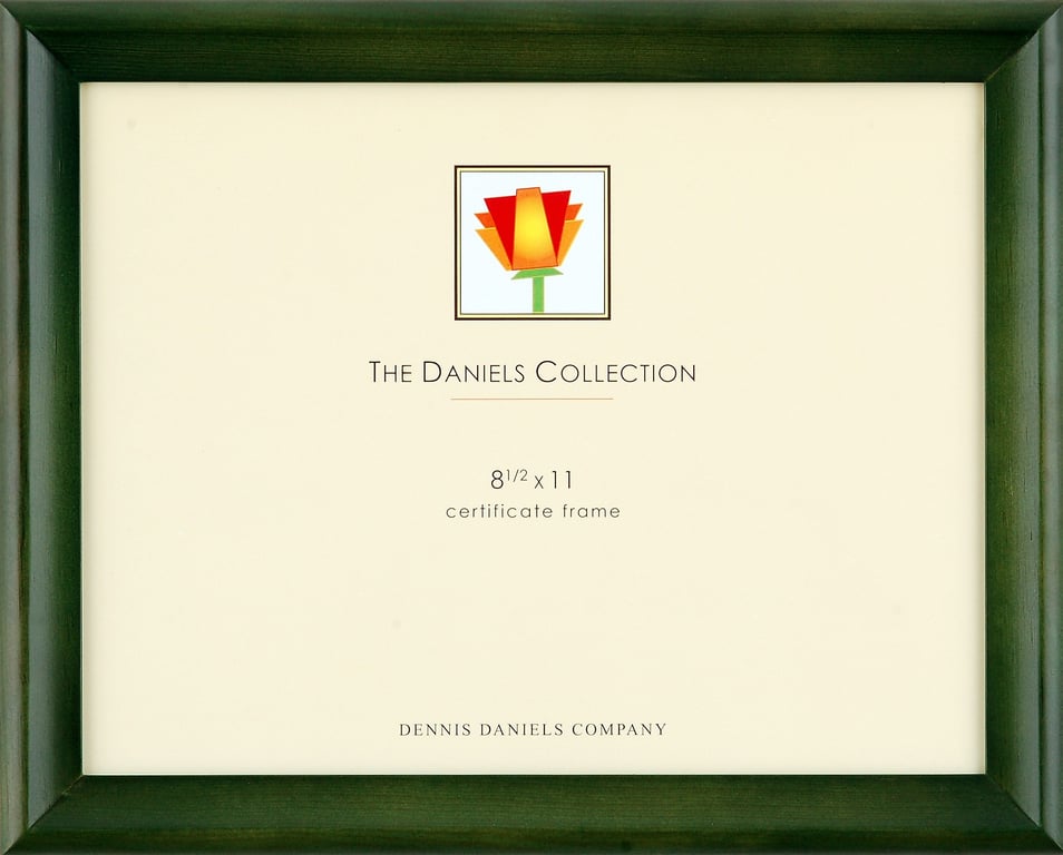Product Details Dennis Daniels® Green furniture finish CONTOUR bevel by Dennis Daniels — The Dennis Daniels company has created a diploma & certificate green frame (11"x8½") with high quality workmanship and material standards..This is a lovely frame, constructed of beveled mouldings and a natural stain and wax.Fine varnished detail with beautifully hand-seamed corners and acid-free backing and matting. Glare-resistant glass lens.Frame has attractive dual easel hardboard back as well as wall mount hooks for easy hanging.Moulding edge is 1" wide.Crafted by Dennis Daniels®, the beautiful California frame company.. Green furniture finish CONTOUR bevel by Dennis Daniels Model #782680006106 $19.00 This item is currently out of stock and we do not have an expected date at the present time. click here to be automatically notified when it comes back in stock or email merchandising@sendaframe.com for availability information. You can place this item in your shopping cart. It will be added to the 'saved for later' section. Your Price Match is Active Your request for a price of $0.00 for a minimum quantity of has been accepted. You have [time] left to purchase this item for $0.00 instead of $19.00 each. Find a Lower Price? We BEAT All Authorized Retailers [?] FEATURESDisplays:8.50"x11"Material:Wood (full grain)Finish:GreenOccasion:Business & office, Home decorating, Corporate giftsStyle:Classic, Contemporary, TraditionalOrientation:BothBrand:Dennis Daniels®Display Type:Desktop or Wall This item ships in its own box SHARE THIS ITEM Share on Facebook