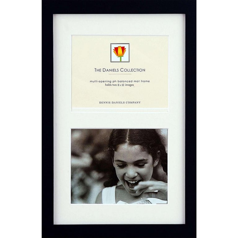 Main view Product Details Dennis Daniels® Black-Ebony wood side-by-side duo w/coordinated mat by Dennis Daniels® — This classic ebony-black stained frame, with removable acid-free off-white mat, displays two (2) 8"x10" prints with its mat.Piece comes complete with anodized wall mounts for easy hanging.Crafted by Dennis Daniels® of California. Black-Ebony wood side-by-side duo w/coordinated mat by Dennis Daniels® Model #782680021055 List $45.00 You pay $32.95 This item IS in stock and can be expected to ship 01/21/2026 In stock Your Price Match is Active Your request for a price of $0.00 for a minimum quantity of has been accepted. You have [time] left to purchase this item for $0.00 instead of $32.95 each. Find a Lower Price? We BEAT All Authorized Retailers [?] FEATURESDisplays:8"x10"Material:Wood (full grain)Finish:BlackOccasion:Home decorating, Celebrating Travels, Corporate giftsStyle:Classic, Contemporary, Minimal, TraditionalOrientation:BothBrand:Dennis Daniels®Display Type:Wall Only Approx. Overall Dimensions:13"x19 3/4"x11/16" This item ships in its own box SHARE THIS ITEM Share on Facebook