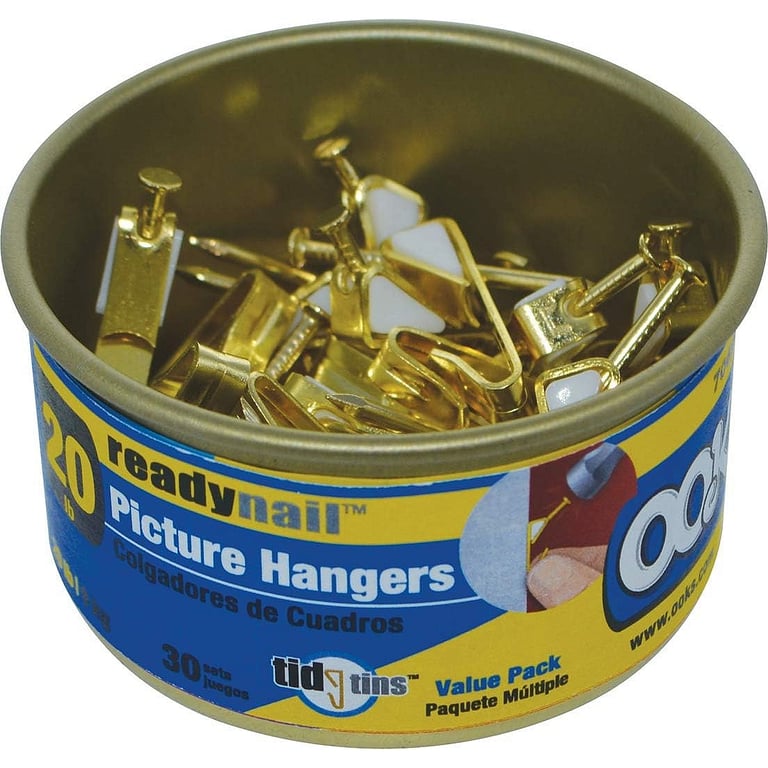 Main view Product Details OOK® Hanger Hardware READYNAIL TIDY-TIN 20lb Picture Frame Hooks by OOK® — OOK ReadyNail Picture Hangers are uniquely designed to be hands free for easy installation. Pre-threaded brass finished hanger removes the hassles of holding your nail and hanger steady. Ideal for drywall and plaster surfaces. Tin contains 30 sets. Hangers are reusable and are designed to eliminate wall damage. To shop the complete inventory of OOK styles, click: OOK® Hanging Hardware Here's Norma Vally for the OOKS line of ready-nail hangers "How to Hang Art": READYNAIL TIDY-TIN 20lb Picture Frame Hooks by OOK® Model #049223506074 List $12.50 You pay $7.95 In stock Ships next business day [?] Your Price Match is Active Your request for a price of $0.00 for a minimum quantity of has been accepted. You have [time] left to purchase this item for $0.00 instead of $7.95 each. Find a Lower Price? We BEAT All Authorized Retailers [?] FEATURESMaterial:BrassFinish:GoldOccasion:Business & office, Home decoratingStyle:ArchitecturalBrand:OOK® Hanger HardwareDisplay Type:not applicable n/a This item ships in its own box SHARE THIS ITEM Share on Facebook