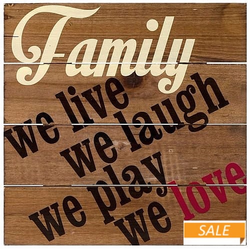 Back to results Scroll Items 9740 of 11093 Product Details Malden Designs® FAMILY WE LOVE Box Sign by Malden® — Designed and crafted by Malden®, this inspirational 12x12 box sign will certainly become a conversation starter in any casual room setting. FAMILY we live we laugh we play we love Wall mounts included for easy hanging. Malden® is a leader in unique frames and home décor for every home and work environment. FAMILY WE LOVE Box Sign by Malden® Malden Designs® HOLIDAY CELEBRATION Savings - ends SundayBuy More / Save More * Add this item to your cart for the full details of this promotion. Conditions may apply. Model #096287144933 List $18.00 You pay $8.90 In stock Ships next business day [?] Your Price Match is Active Your request for a price of $0.00 for a minimum quantity of has been accepted. You have [time] left to purchase this item for $0.00 instead of $8.90 each. Find a Lower Price? We BEAT All Authorized Retailers [?] FEATURESMaterial:Wood (mdf/engineered)Finish:Black, Brown, Ivory/CreamOccasion:Housewarming, InspirationalStyle:Distressed - Weathered, Rustic/Lodge, Shabby Chic, Sports & leisure, Words & whimsy, Sentiments | ready madeBrand:Malden Designs®Display Type:Wall Only Approx. Overall Dimensions:12"x12" This item ships in its own box SHARE THIS ITEM Share on Facebook