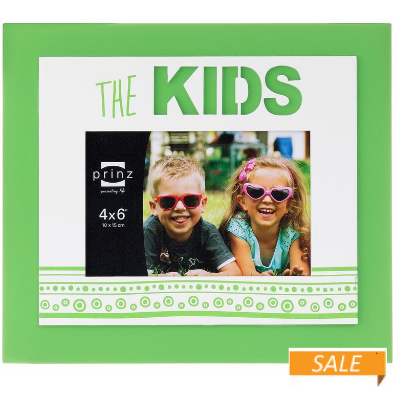 Product Details Prinz® frames & albums THE KIDS by Prinz® — A 2 layer wood frame with cutout and screen printed design. One way easel with wall mount included for easy hanging. Glare resistant glass lens. Part of the IN THE MOMENT collection, by Prinz®. THE KIDS by Prinz® Model #086981784887 List $14.50 You pay $6.90 In stock Ships next business day [?] Your Price Match is Active Your request for a price of $0.00 for a minimum quantity of has been accepted. You have [time] left to purchase this item for $0.00 instead of $6.90 each. Find a Lower Price? We BEAT All Authorized Retailers [?] FEATURESDisplays:4"x6"Material:Wood (full grain)Finish:GreenOccasion:Christmas, InspirationalStyle:Bold Colors, Contemporary, Words & whimsy, Sentiments | ready madeOrientation:Horizontal OnlyBrand:Prinz® frames & albumsDisplay Type:Desktop or Wall This item ships in its own box SHARE THIS ITEM Share on Facebook