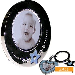 Main view Frame Key chain Frame detail Box Product Details GUND® Silver Lil' Star Boy frame and key chain set by GUND® — An adorable piece for any little boy's room!Fashioned in beautiful polished silver plate. The cute star details on the bottom of the frame adds to the charm.Heart shaped 1"x1"x frame key-chain accented with jewels is included.Glare resistant glass lens and velvet easel back for tabletop display.A terrific keepsake piece for remembering your little one's special time.Another very cute special frame from Gund Gifts®. Silver Lil' Star Boy frame and key chain set by GUND® Model #045544174770 List $18.00 You pay $8.90 In stock Can be shipped today [?] Your Price Match is Active Your request for a price of $0.00 for a minimum quantity of has been accepted. You have [time] left to purchase this item for $0.00 instead of $8.90 each. Find a Lower Price? We BEAT All Authorized Retailers [?] FEATURESDisplays:3"x3"Material:SilverplateFinish:SilverOccasion:Baby shower, Birthday (child), Christmas, New babyStyle:Child`s play, Contemporary, Words & whimsy, Sentiments | ready madeOrientation:BothBrand:GUND® This item ships in its own box SHARE THIS ITEM Share on Facebook
