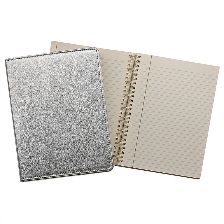 Main view Storage Gift Box (sample) Product Details Graphic Image® SPIRAL REFILLABLE JOURNAL 9in METALLIC SILVER Fine Leather by Graphic Image™ — The leather notebook that quickly becomes a writer's constant companion. This leather notebook includes a spiral insert with 144 lined perforated pages on gold-gilded premium paper. Handy for everyday note taking, business or journal writing. Genuine full-grain goatskin leather for superior wear Size: 7x9¼" Available in many colors (see links below). Personalization is available in gold or blind stamping For additional refills, see ACCESSORIES below Graphic Image™ hand crafts genuine leather-bound books that have set the modern day standard for quality and design. SPIRAL REFILLABLE JOURNAL 9in METALLIC SILVER Fine Leather by Graphic Image™ Model #611959676293 $148.00 This item IS in stock and can be expected to ship 01/23/2026 Your Price Match is Active Your request for a price of $0.00 for a minimum quantity of has been accepted. You have [time] left to purchase this item for $0.00 instead of $148.00 each. Find a Lower Price? We BEAT All Authorized Retailers [?] FEATURESDisplays:7"x9"Material:Leather (fine)Finish:SilverOccasion:Business & office, Corporate gifts, Employee honors, Good luck, Graduation, Inspirational, Thank-Motivate-Reward, Back to SchoolStyle:Classic, Preppy, Traditional, ContemporaryBrand:Graphic Image®Display Type:not applicable n/a Approx. Overall Dimensions:7"x9 1/4" This item ships in its own box SHARE THIS ITEM Share on Facebook