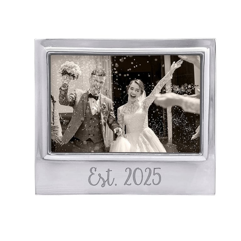 Main view Product Details Mariposa® EST. 2025 - SIGNATURE 6x4 frame by Mariposa® — The SIGNATURE frame for 6"x4" photos engraved with the sentiment Est. 2025 Mariposa fine metallic decor is handcrafted from 100% recycled sandcast aluminum. Items will not tarnish If needed, handwash in warm water with mild soap and towel dry immediately Occasional use of non-abrasive metal polish will revive luster Important Note: Mariposa items are hand engraved. Your piece may differ slightly from the photo. Hint: If you would like this style customized with names, a date . . . use the blank model and have us engrave for you. EST. 2025 - SIGNATURE 6x4 frame by Mariposa® Mariposa® FALL CELEBRATION Savings - Buy More / Save More * Add this item to your cart for the full details of this promotion. Conditions may apply. Model #808813200248 List $64.00 You pay $58.95 In stock Can be shipped today [?] Your Price Match is Active Your request for a price of $0.00 for a minimum quantity of has been accepted. You have [time] left to purchase this item for $0.00 instead of $58.95 each. Find a Lower Price? We BEAT All Authorized Retailers [?] Approx. Overall Dimensions:6 3/4"x5 3/4"x1" This item ships in its own box SHARE THIS ITEM Share on Facebook