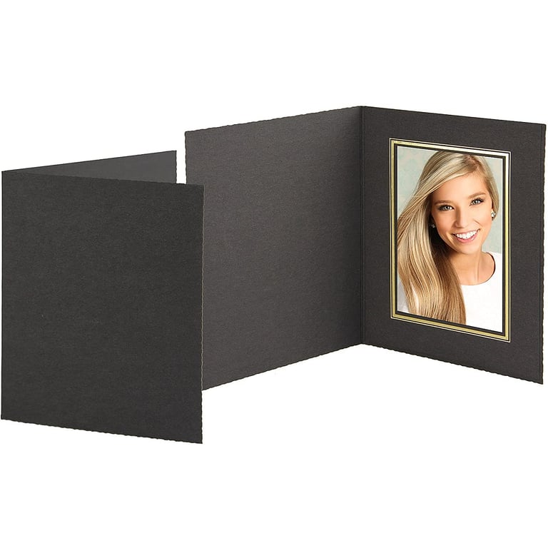 TAP™ Black Cardstock Paper Portrait Folder 4x6 frame w/gold foil border (sold in 25s) —