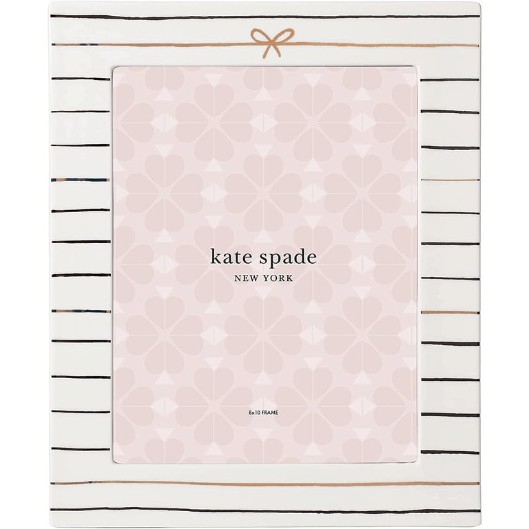 Main view Gift Box (samples) Product Details Lenox® A CHARMED LIFE 8x10 frame by kate spade new york® — Picture perfect! A thoughtful 8x10 frame to display all your favorite memories. Featuring thin silver and gold stripes and a petite bow to compliment whichever photo you choose. 8" x 10" frame, is crafted from beautiful porcelain. SendAFrame proudly carries the entire Kate Spade® photo collection. To view the complete collection, visit: Kate Spade® Collection A CHARMED LIFE 8x10 frame by kate spade new york® Model #882864868169 List $90.00 You pay $79.95 This item IS in stock and can be expected to ship 01/27/2026 In stock Your Price Match is Active Your request for a price of $0.00 for a minimum quantity of has been accepted. You have [time] left to purchase this item for $0.00 instead of $79.95 each. Find a Lower Price? We BEAT All Authorized Retailers [?] FEATURESDisplays:8"x10"Material:PorcelainFinish:SilverOccasion:Anniversary, Engagement, Romantic, Valentine`s Day, WeddingStyle:Contemporary, Romantic, Preppy, Unique | LimitedOrientation:Vertical OnlyBrand:Lenox®Display Type:Tabletop (or wall w/optional hanger - available separately) This item ships in its own box SHARE THIS ITEM Share on Facebook
