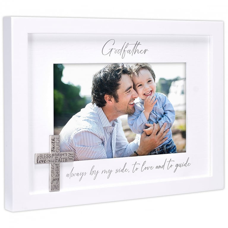 Main view Product Details Malden Designs® GODFATHER w/Metallic Holy Cross — Godfather always by my side to love and to guide Celebrate your godfather's bond with Malden's silver etched picture frame.Very pretty polished accents, including a Holy Cross, against the white background.One-way easel back with nice hardboard backing. Glare resistant glass lens.Crafted by Malden®. GODFATHER w/Metallic Holy Cross Malden Designs® FALL CELEBRATION Savings - ends SundayBuy More / Save More * Add this item to your cart for the full details of this promotion. Conditions may apply. Model #096287178020 List $18.50 You pay $14.95 In stock Ships next business day [?] Your Price Match is Active Your request for a price of $0.00 for a minimum quantity of has been accepted. You have [time] left to purchase this item for $0.00 instead of $14.95 each. Find a Lower Price? We BEAT All Authorized Retailers [?] FEATURESDisplays:4"x6"Material:SilverplateFinish:Gray/Charcoal, SilverOccasion:Baby shower, Birthday (child), Baptism + Christening, Communion, Inspirational, New babyStyle:Contemporary, Traditional, Words & whimsy, Expressions > ready made, Christian DevotionalsBrand:Malden Designs®Display Type:Desktop or Wall Approx. Overall Dimensions:8 1/2"x6 1/2"x3/4" This item ships in its own box SHARE THIS ITEM Share on Facebook