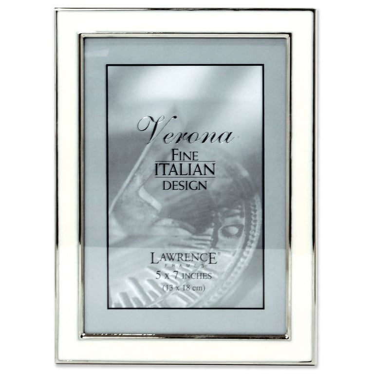 Product Details Lawrence Frames® VERONA white enamel & silver accent by Lawrence® — This beautiful white enamel frame is accented with silver on both inner and outer edges for a very contemporary look.Nicely backed; dual easel back for either landscape or portrait tabletop display.Moulding edge is a very contemporary 5/8" wide.From Lawrence®, maker of fine frames for generations. VERONA white enamel & silver accent by Lawrence® Lawrence® HOLIDAY CELEBRATION Savings: Buy More / Save More * Add this item to your cart for the full details of this promotion. Conditions may apply. Model #751148060561 List $35.00 You pay $25.95 In stock Ships next business day [?] Your Price Match is Active Your request for a price of $0.00 for a minimum quantity of has been accepted. You have [time] left to purchase this item for $0.00 instead of $25.95 each. Find a Lower Price? We BEAT All Authorized Retailers [?] FEATURESDisplays:5"x7"Material:EnamelFinish:WhiteOccasion:Business & office, Congratulations, Corporate gifts, Friendship, Home decorating, Teacher gifts, Team & coach gifts, Thank-Motivate-Reward, Celebrating TravelsStyle:Classic, ContemporaryOrientation:BothBrand:Lawrence Frames®Display Type:Desktop or Wall This item ships in its own box SHARE THIS ITEM Share on Facebook